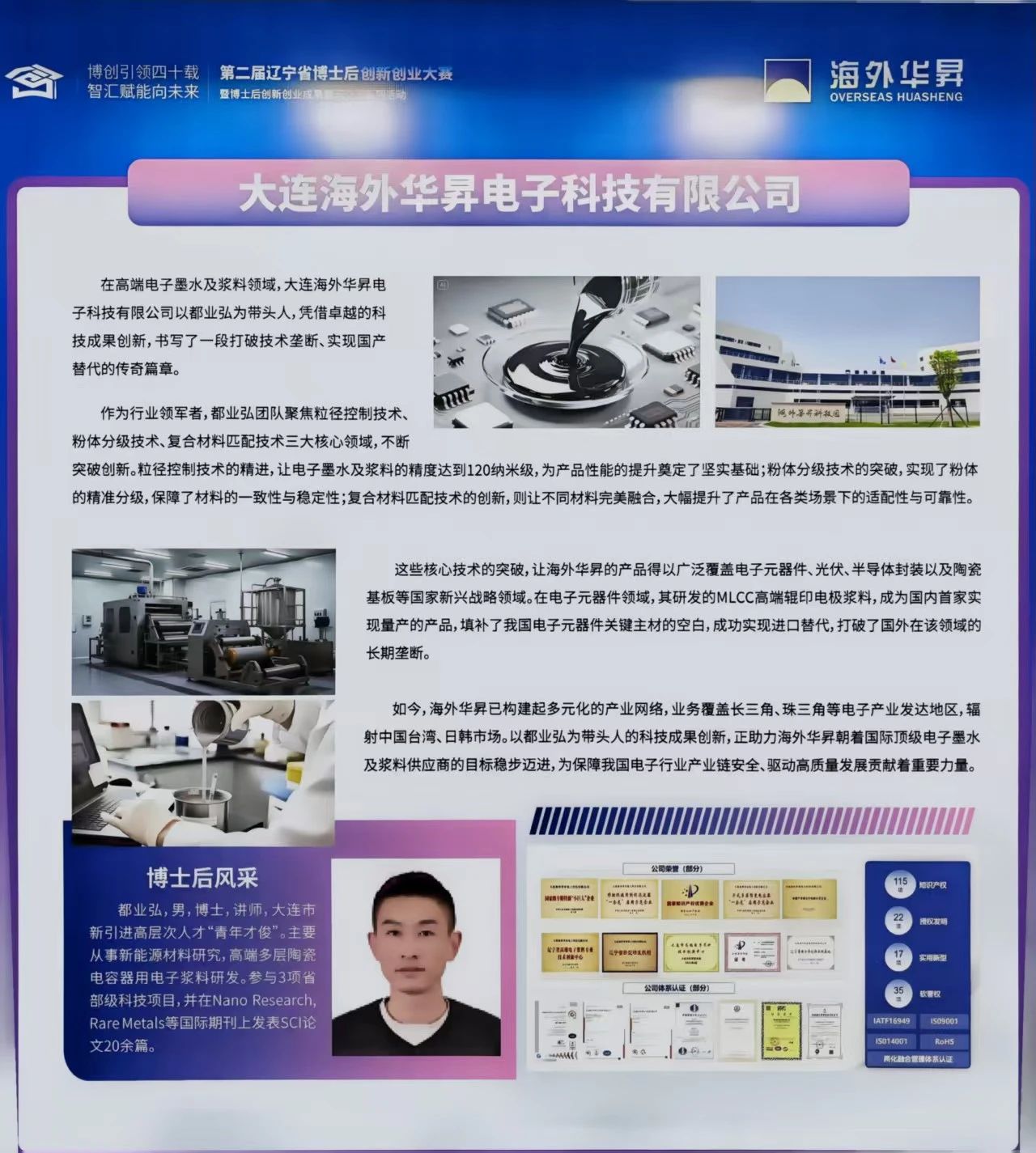 大連海外華昇電子科技有限公司(簡稱“海外華昇”)于2016年4月成立,注冊資本7940萬元,是一家專業(yè)從事高精度、微米/納米級電子漿料研發(fā)、生產(chǎn)和銷售的高新技術(shù)企業(yè)。目前,海外華昇已完成實際投資超2億元,建成大連總公司、無錫子公司、東莞分公司、上海子公司(上海正銀)、嘉興子公司(浙江納沛)、肇慶子公司、淮北子公司和日本子公司,擁有國際領(lǐng)先的電子漿料精益生產(chǎn)線,設備400臺(套),設計年產(chǎn)能1000噸,設計產(chǎn)值30億元。